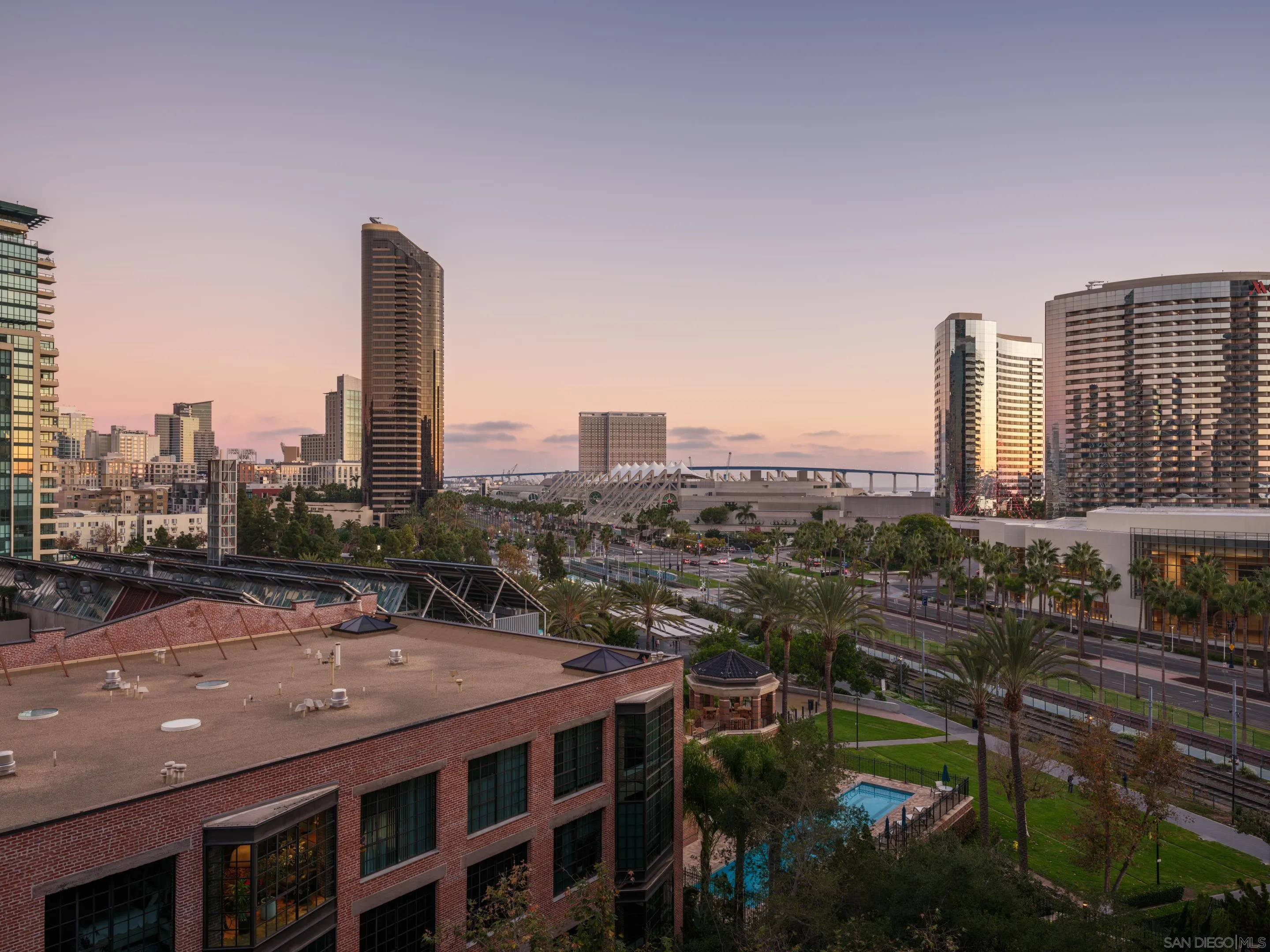 Discover elevated urban living at CityFront Terrace from this 2 BR, 2 BA residence in downtown San Diego's sought-after Marina District. This beautifully updated residence offers peek bay views of the Coronado Bridge, and the city skyline, with a spacious balcony overlooking the community's lush Urban Canyon gardens. Inside, the open layout blends style and function with a modernized kitchen featuring quartz countertops, stainless appliances, designer backsplash, and custom lighting. The primary suite offers a calm retreat with mirrored closet and a remodeled bath with deep jetted bath & dual quartz vanity. A versatile second bedroom includes a built-in Murphy bed and desk system, ideal for guests or a home office. Home comes with one large parking spot. CityFront Terrace is legendary in downtown San Diego for its high-end service and amenities with valet parking, 24 hour security/door service, 3,500 sq ft fitness center, two heated pools, clubroom, concierge services, and more! With the waterfront, Seaport Village, the Rady Shell, Little Italy, and the new Research and Development Districts just outside your door, this is downtown living at its best.